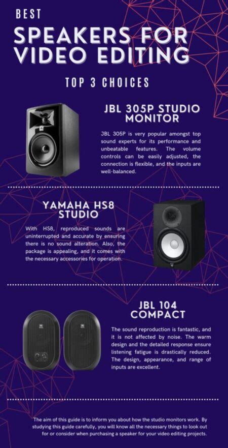 - Features: Some speakers come with additional features that can be helpful for video editing, such as built-in equalization or headphone jacks.